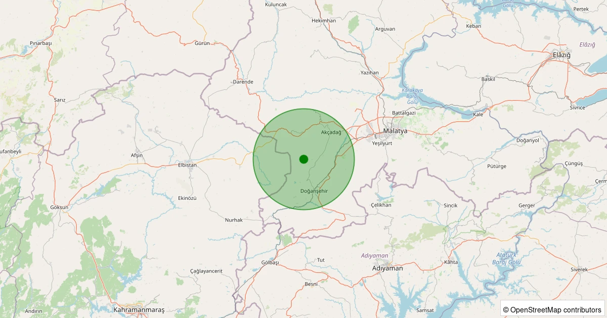 Son 7 gün içinde Doğanşehir - Dedeyazı noktasından 100 km yarıçap içerisinde meydana gelen diğer depremler: