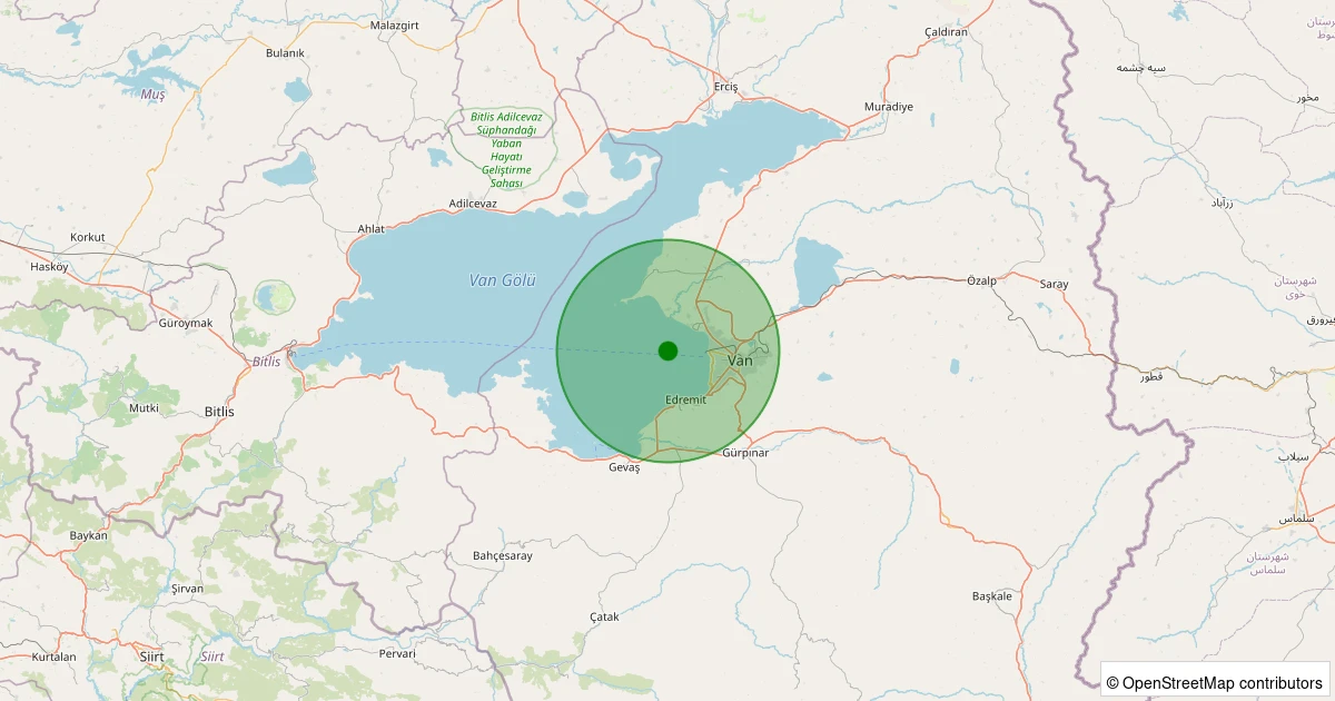 Son 7 gün içinde Tuşba noktasından 100 km yarıçap içerisinde meydana gelen diğer depremler:
