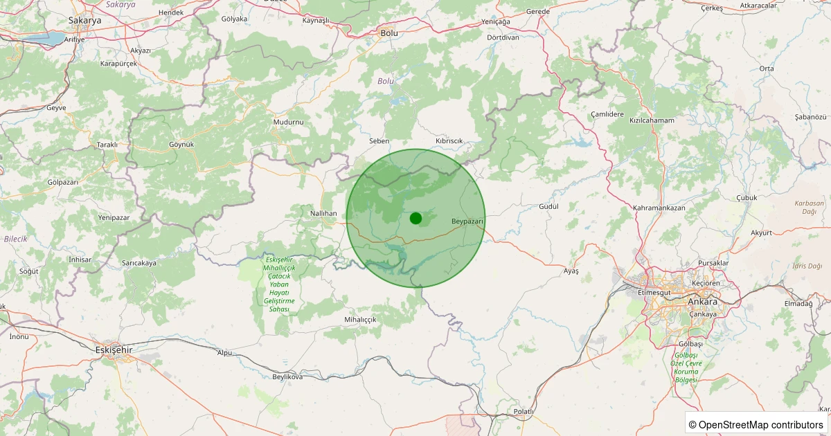 Son 7 gün içinde Beypazarı - Sekli noktasından 100 km yarıçap içerisinde meydana gelen diğer depremler: