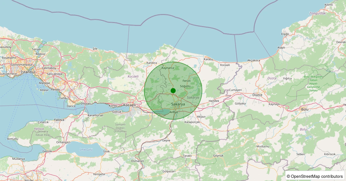 Son 7 gün içinde Adapazarı - Ekizce Osmaniye noktasından 100 km yarıçap içerisinde meydana gelen diğer depremler: