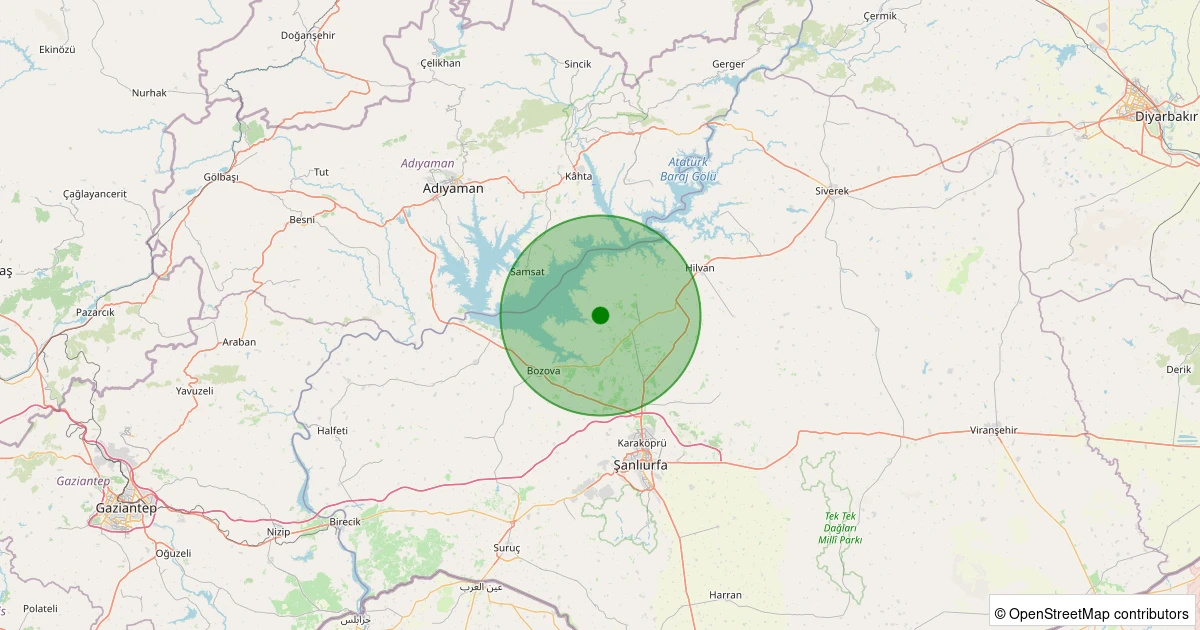 Son 7 gün içinde Karaköprü - Bahçeli noktasından 100 km yarıçap içerisinde meydana gelen diğer depremler: