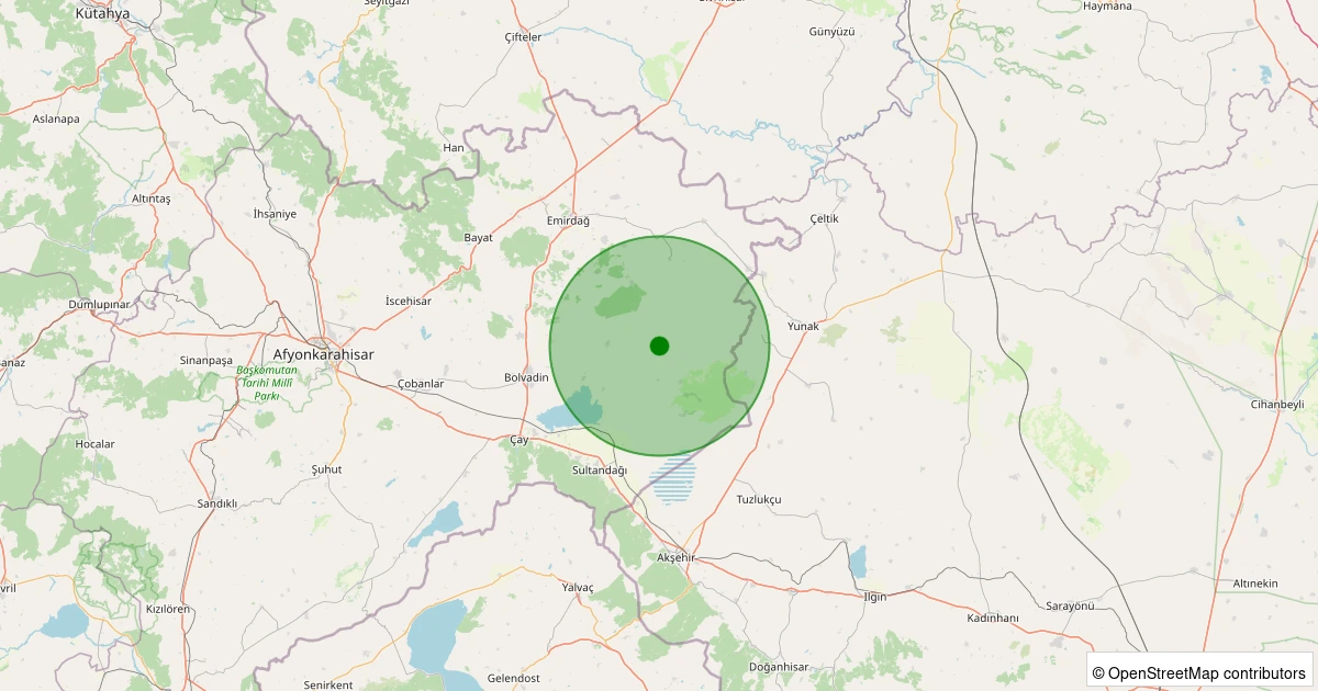 Son 7 gün içinde Sultandağı - Çukurçak Köyü noktasından 100 km yarıçap içerisinde meydana gelen diğer depremler: