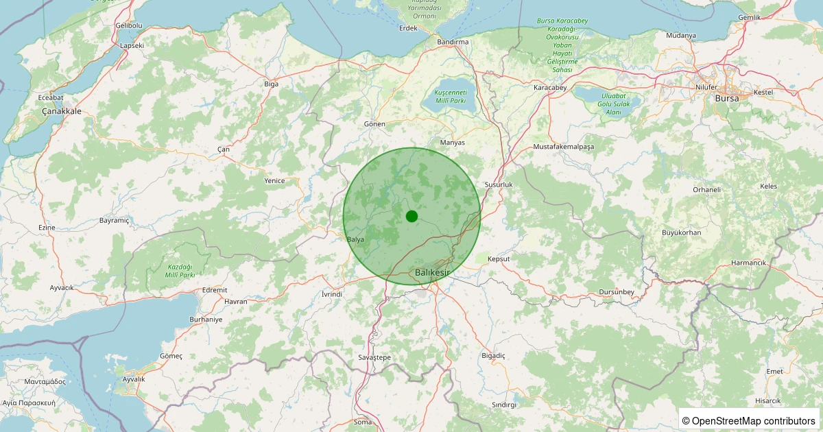 Son 7 gün içinde Karesi - Kırmızılar noktasından 100 km yarıçap içerisinde meydana gelen diğer depremler: