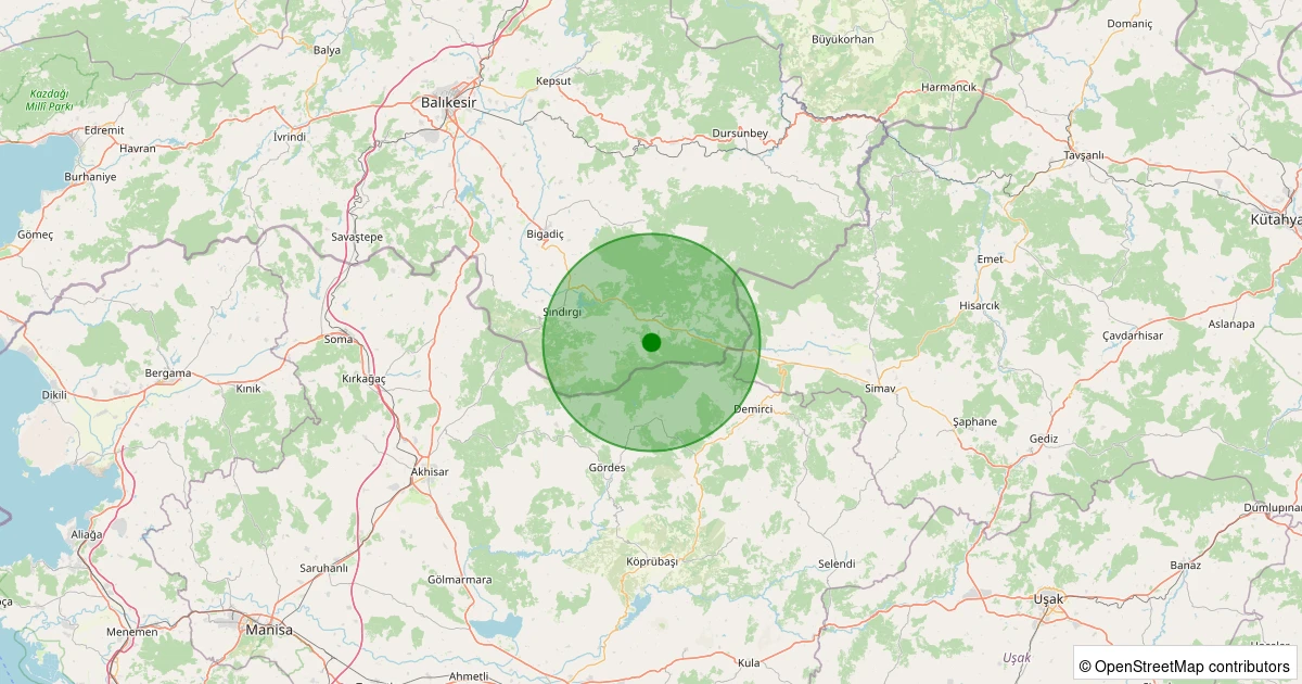 Son 7 gün içinde Sındırgı - Çıkrıkçı noktasından 100 km yarıçap içerisinde meydana gelen diğer depremler: