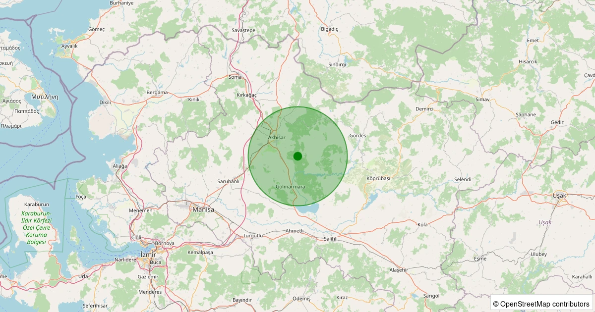 Son 7 gün içinde Akhisar - Taşçılar Köyü noktasından 100 km yarıçap içerisinde meydana gelen diğer depremler: