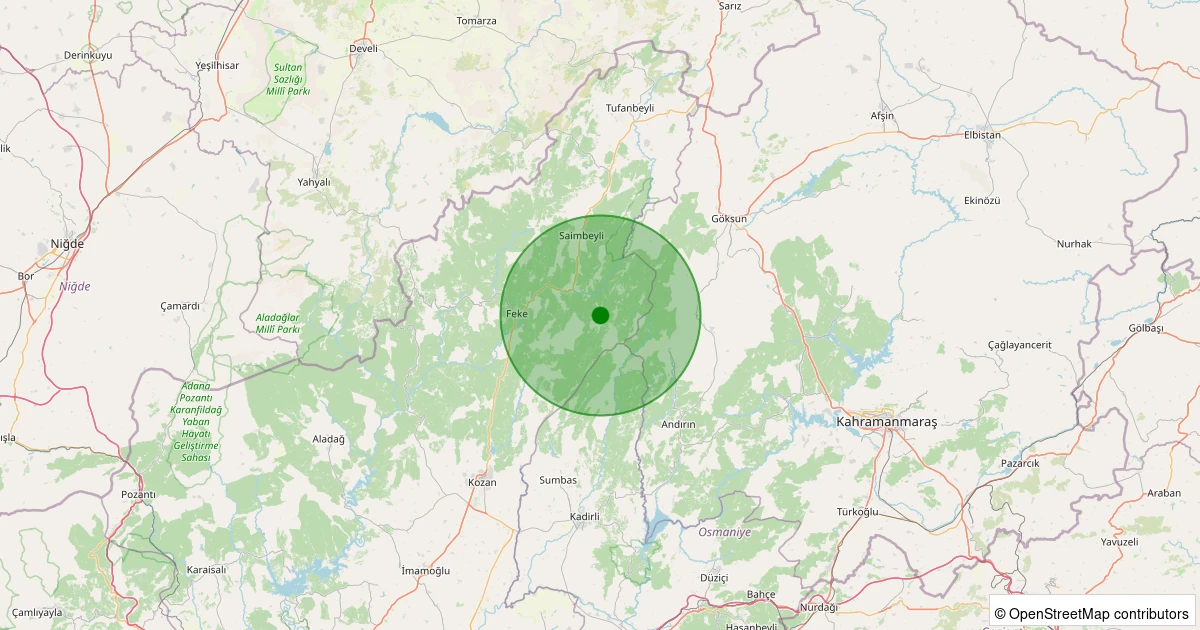 Son 7 gün içinde Saimbeyli - Değirmenciuşağı noktasından 100 km yarıçap içerisinde meydana gelen diğer depremler: