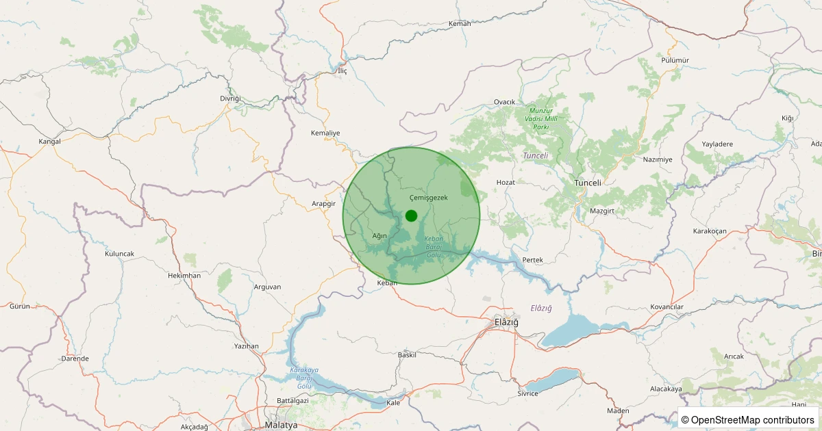 Son 7 gün içinde Çemişgezek - Örenceler Köyü noktasından 100 km yarıçap içerisinde meydana gelen diğer depremler: