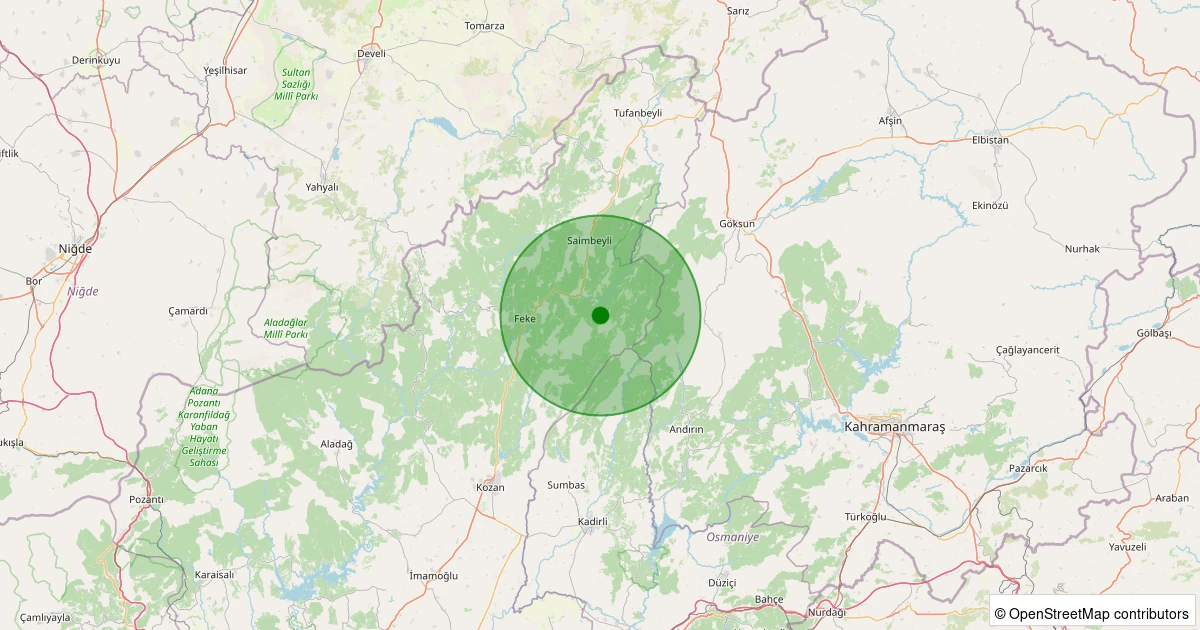 Son 7 gün içinde Saimbeyli noktasından 100 km yarıçap içerisinde meydana gelen diğer depremler:
