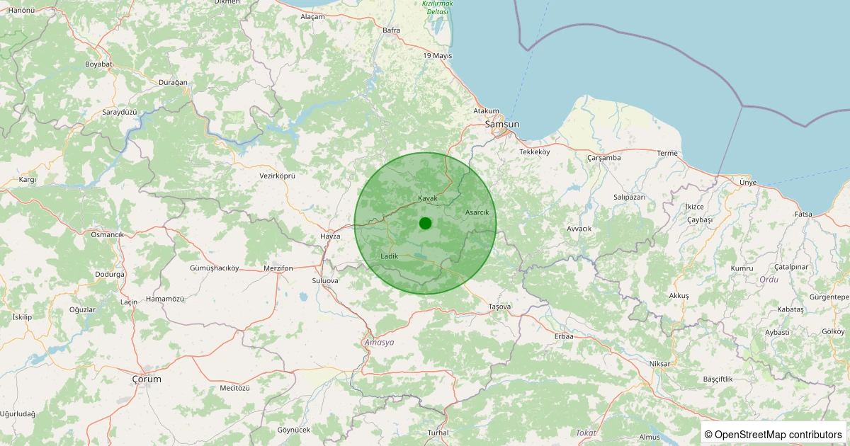 Son 7 gün içinde Kavak - Bükceğiz noktasından 100 km yarıçap içerisinde meydana gelen diğer depremler: