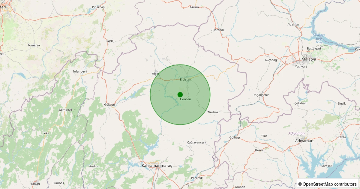 Son 7 gün içinde Ekinözü noktasından 100 km yarıçap içerisinde meydana gelen diğer depremler: