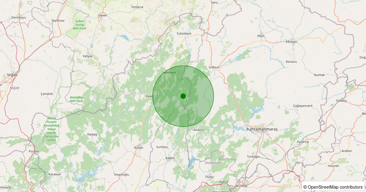 Son 7 gün içinde Saimbeyli - Kapaklıkuyu noktasından 100 km yarıçap içerisinde meydana gelen diğer depremler: