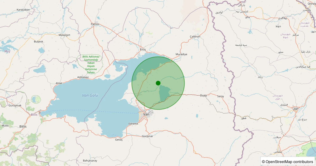Son 7 gün içinde Tuşba - Değirmenözü noktasından 100 km yarıçap içerisinde meydana gelen diğer depremler: