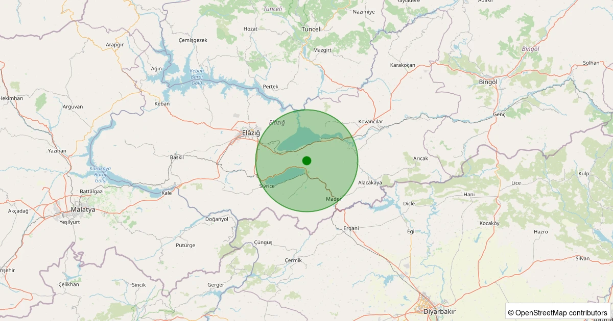 Son 7 gün içinde Maden - Küçükova Köyü noktasından 100 km yarıçap içerisinde meydana gelen diğer depremler: