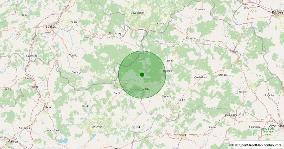 Son 7 gün içinde Simav - Koyunoba Köyü noktasından 100 km yarıçap içerisinde meydana gelen diğer depremler: