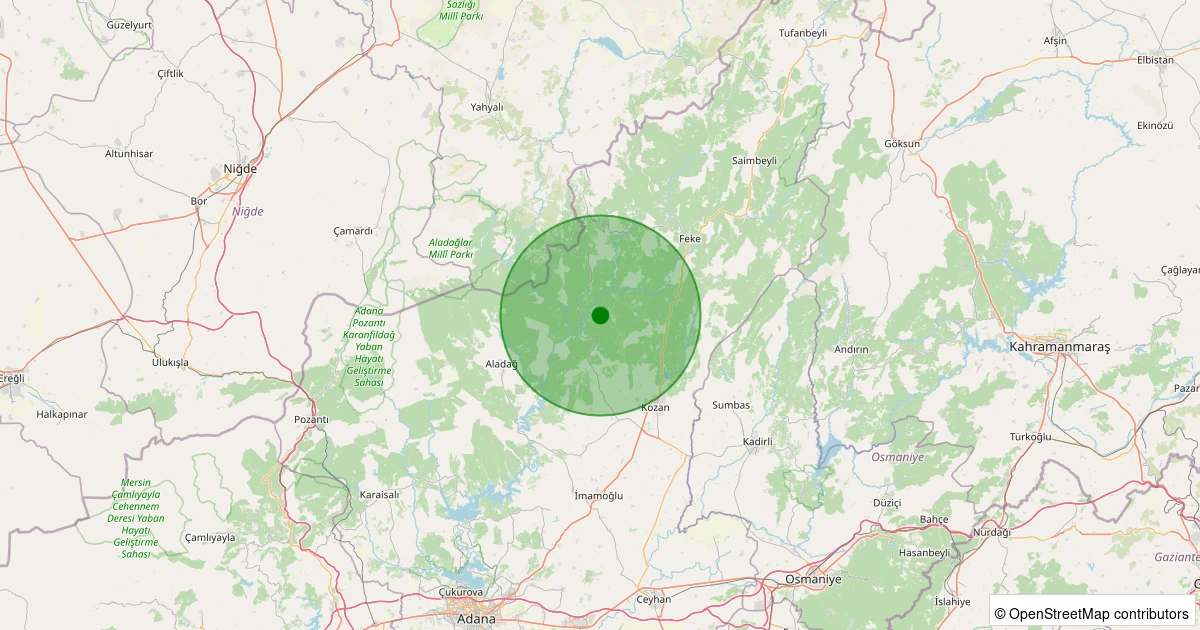 Son 7 gün içinde Kozan - Kızlarsekizi noktasından 100 km yarıçap içerisinde meydana gelen diğer depremler: