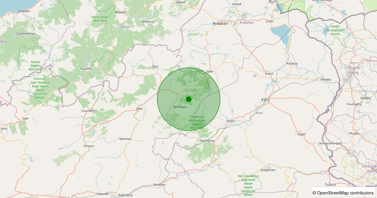 Son 7 gün içinde Şenkaya - Çatalelma noktasından 100 km yarıçap içerisinde meydana gelen diğer depremler: