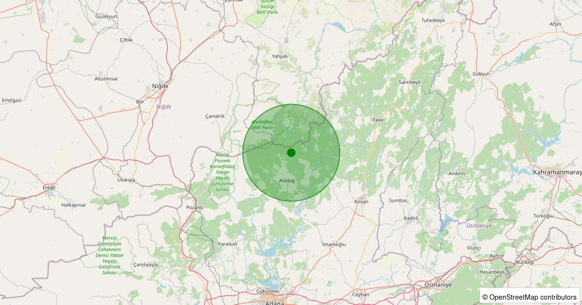 Son bir hafta içerisinde Adana şehri Aladağ - Küp noktasından 100 km yarıçap içerisinde toplamda 96 deprem kaydedilmiştir. Bu depremlerden en büyüğü 3.1 büyüklüğünde ve en sığ odaklısı 1.70 kilometre derinlikte gerçekleşmiştir.