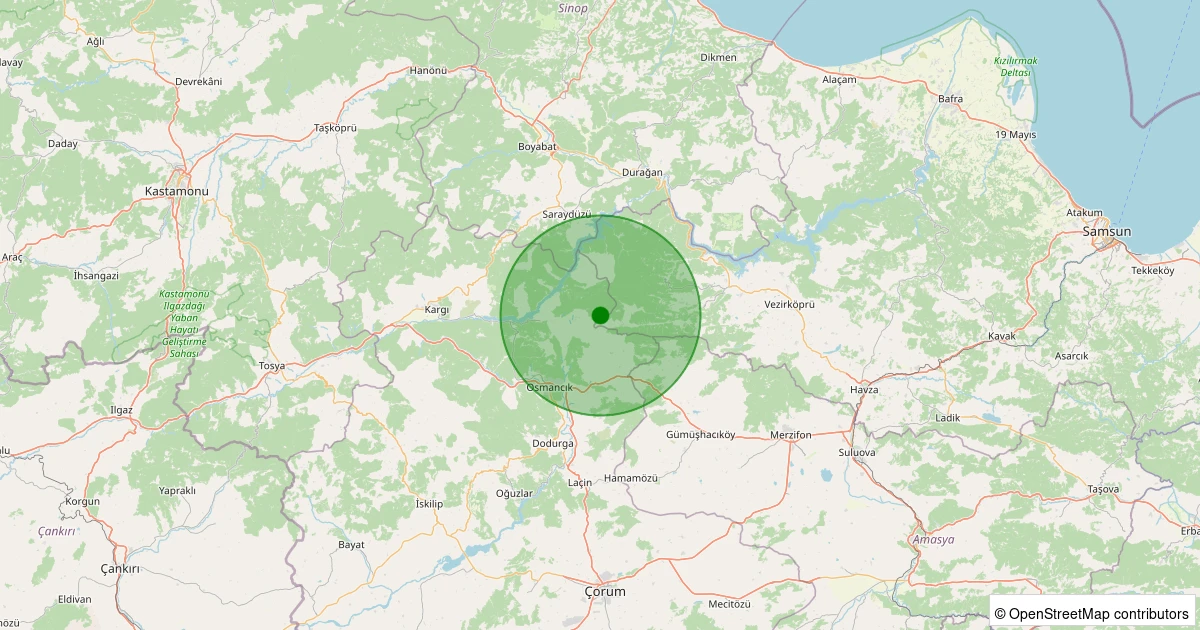 Son 7 gün içinde Osmancık - Karalar Güney Köyü noktasından 100 km yarıçap içerisinde meydana gelen diğer depremler: