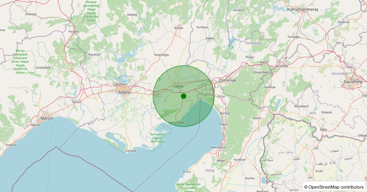 Son 7 gün içinde Ceyhan - Kurtkulağı noktasından 100 km yarıçap içerisinde meydana gelen diğer depremler: