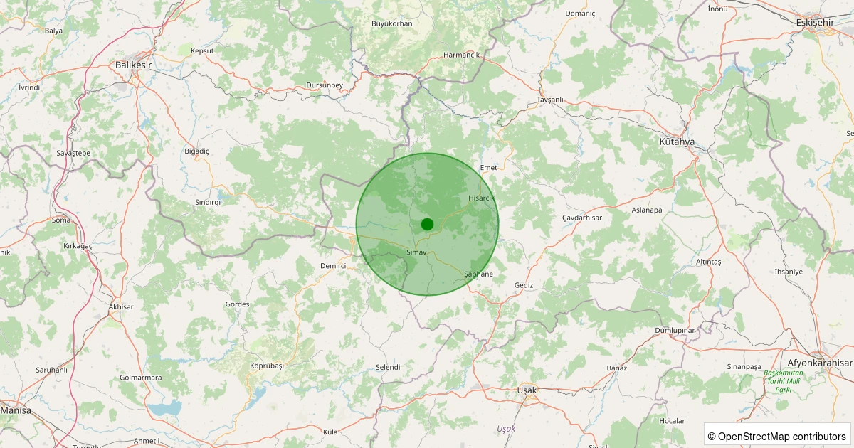 Son 7 gün içinde Simav - Karacaören Köyü noktasından 100 km yarıçap içerisinde meydana gelen diğer depremler: