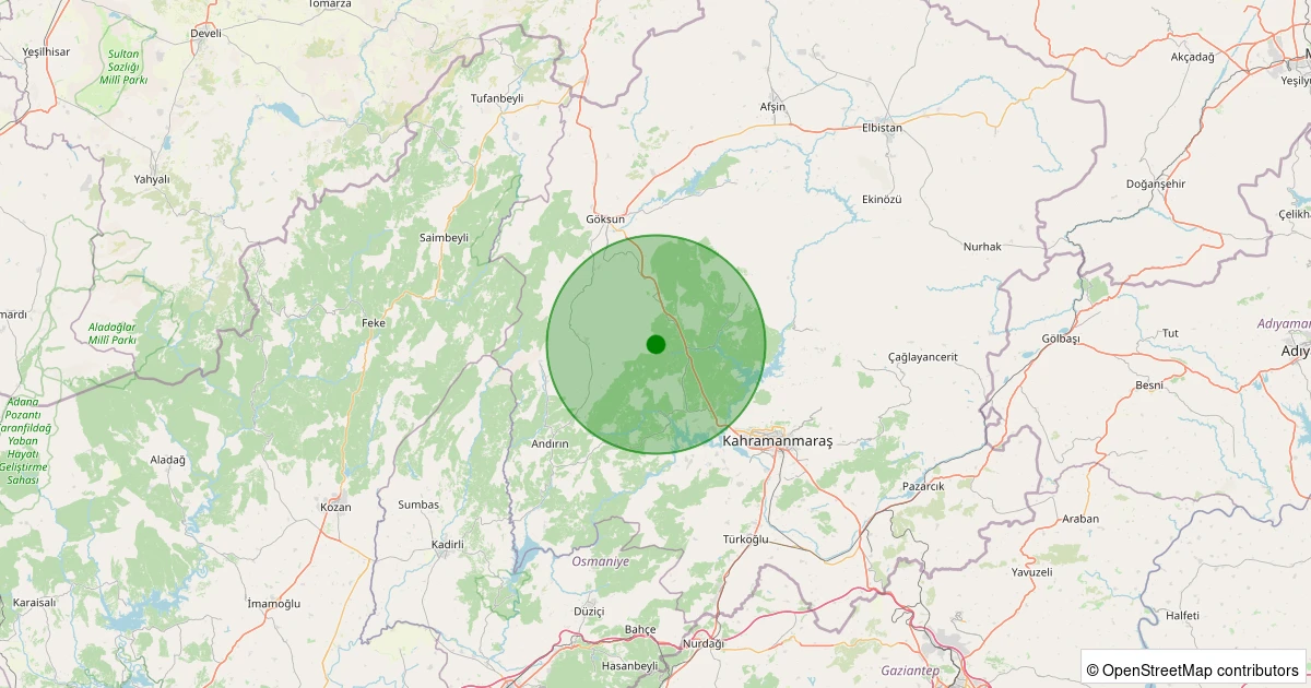 Son 7 gün içinde Onikişubat - Çağlayan noktasından 100 km yarıçap içerisinde meydana gelen diğer depremler: