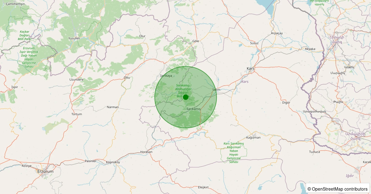 Son 7 gün içinde Sarıkamış - Boyalı Köyü noktasından 100 km yarıçap içerisinde meydana gelen diğer depremler: