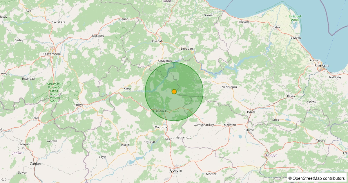 Son 7 gün içinde Osmancık - Karalar Güney Köyü noktasından 100 km yarıçap içerisinde meydana gelen diğer depremler: