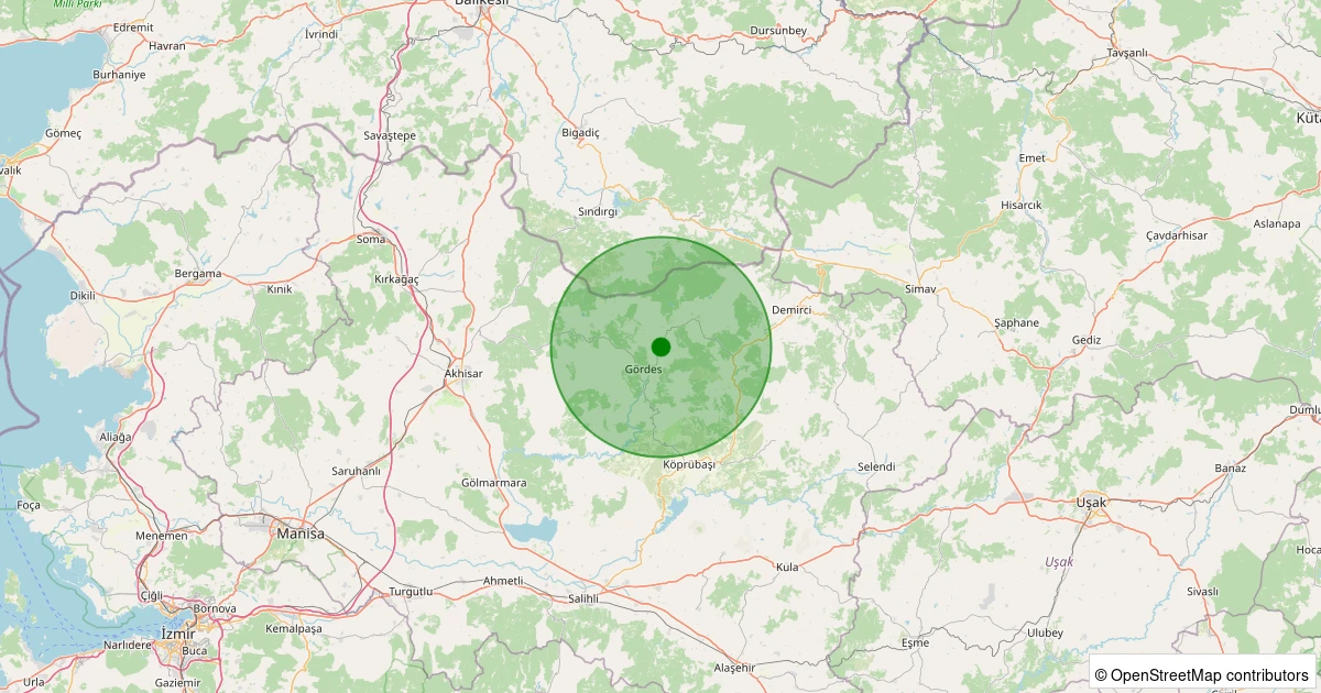 Son 7 gün içinde Gördes - Kuşlukköy noktasından 100 km yarıçap içerisinde meydana gelen diğer depremler: