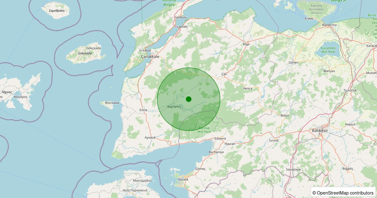 Kandilli üzerinden alınan ölçümlere göre Bayramiç - Yaylacık Köyü bölgesinde 14.02.2026 12:37 tarihinde gündüz saatlerinde 1.3 büyüklüğünde bir deprem meydana geldi.