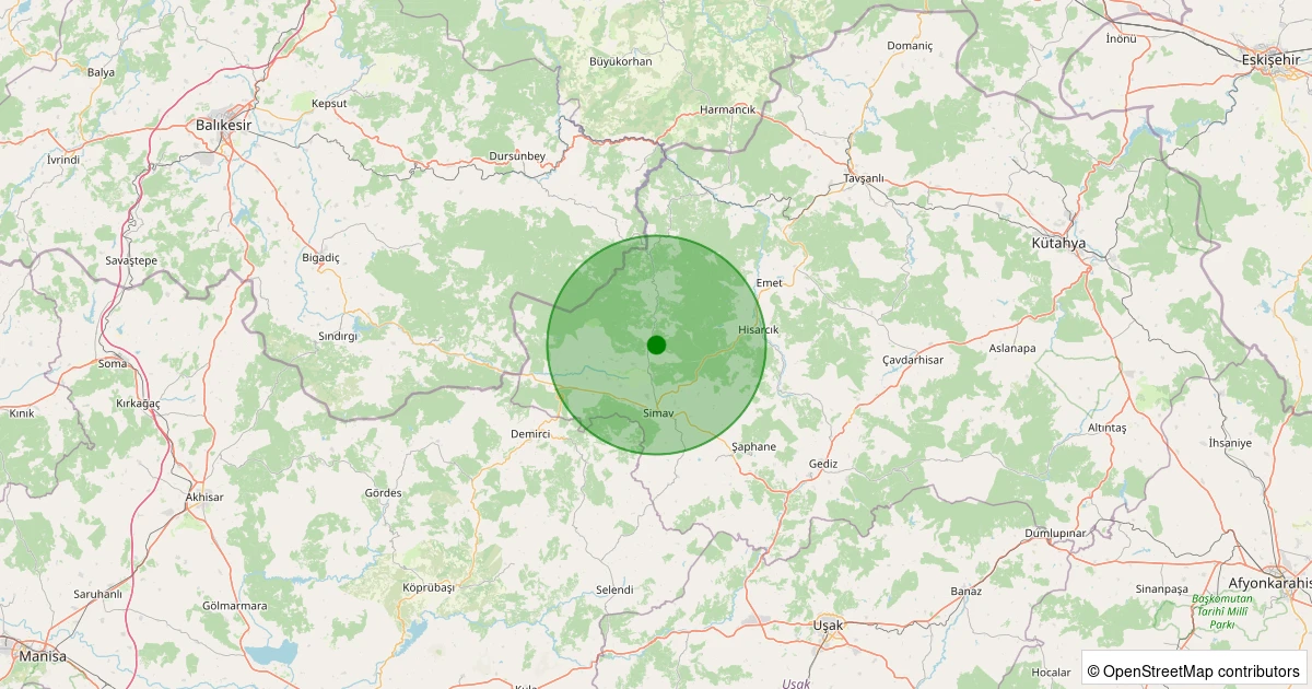 Son 7 gün içinde Simav - Yemişli Köyü noktasından 100 km yarıçap içerisinde meydana gelen diğer depremler: