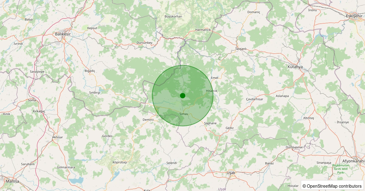 Son 7 gün içinde Simav - Yemişli Köyü noktasından 100 km yarıçap içerisinde meydana gelen diğer depremler: