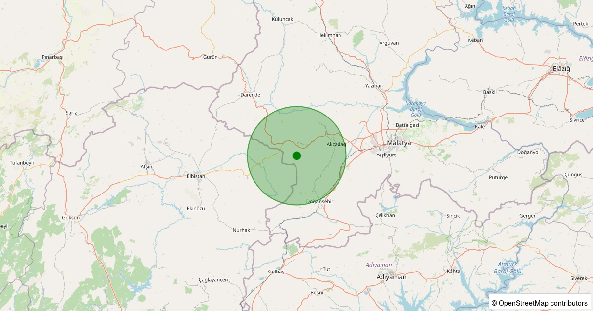 Son 7 gün içinde Akçadağ - Çevirme noktasından 100 km yarıçap içerisinde meydana gelen diğer depremler: