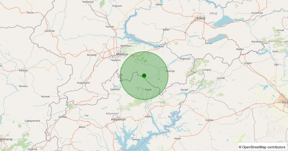 Son 7 gün içinde Pütürge - Arıtoprak Köyü noktasından 100 km yarıçap içerisinde meydana gelen diğer depremler:
