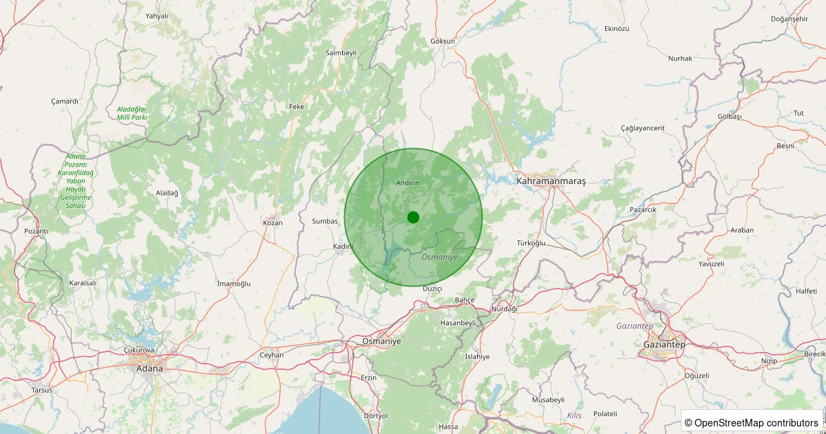 Son 7 gün içinde Andırın - Camuzluk Köyü noktasından 100 km yarıçap içerisinde meydana gelen diğer depremler: