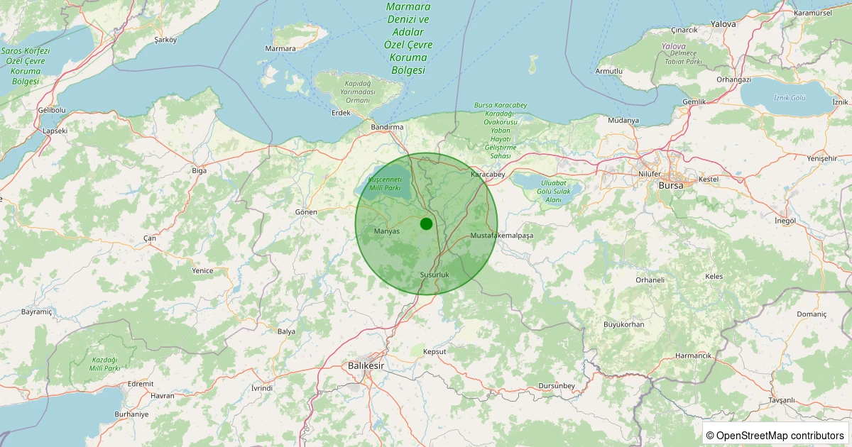 Son 7 gün içinde Susurluk - Ilıcaboğazı noktasından 100 km yarıçap içerisinde meydana gelen diğer depremler:
