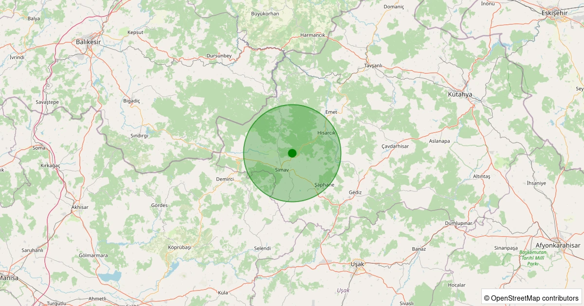 Son 7 gün içinde Simav - Karacaören Köyü noktasından 100 km yarıçap içerisinde meydana gelen diğer depremler: