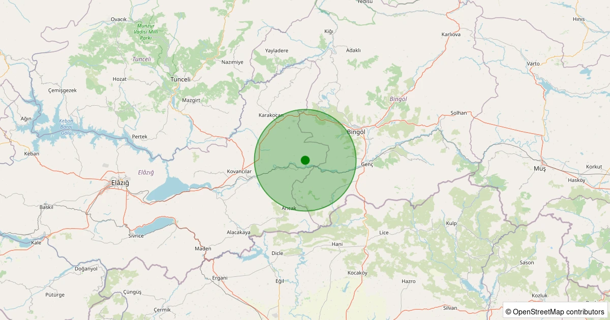 Son 7 gün içinde Palu - Gökdere Köyü noktasından 100 km yarıçap içerisinde meydana gelen diğer depremler: