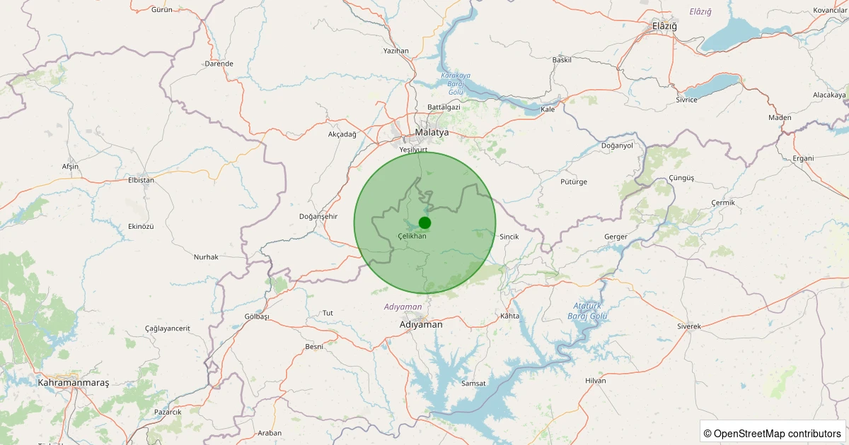 Son 7 gün içinde Çelikhan - Taşdamlar Köyü noktasından 100 km yarıçap içerisinde meydana gelen diğer depremler: