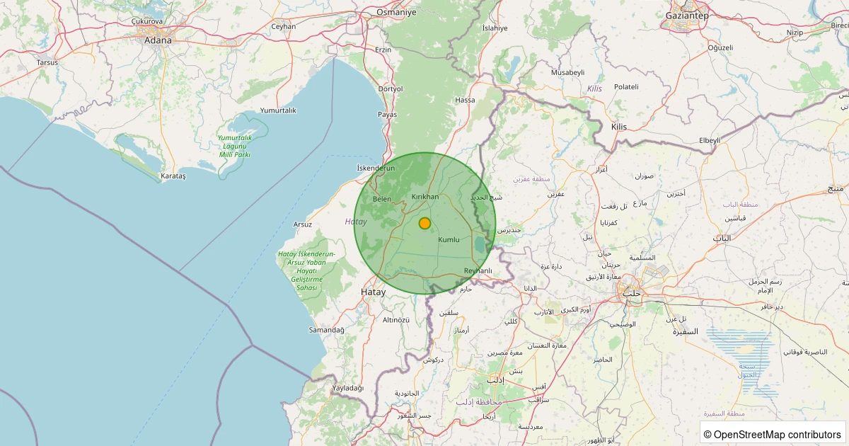 Son 7 gün içinde Kırıkhan - Aktutan Köyü noktasından 100 km yarıçap içerisinde meydana gelen diğer depremler: