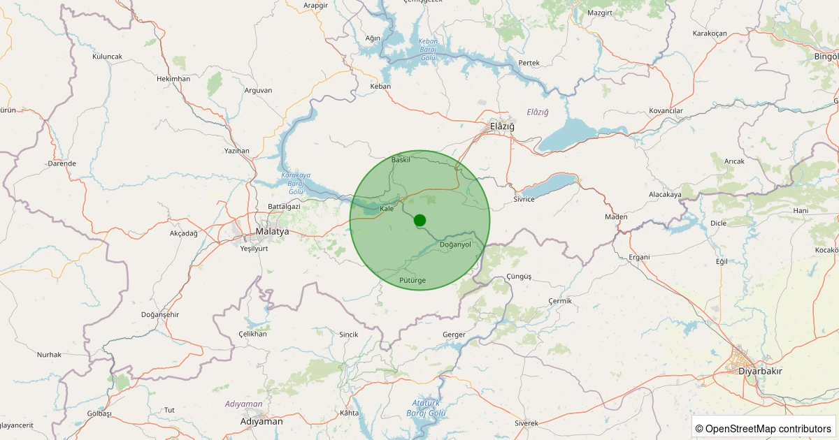 Son 7 gün içinde Sivrice - Kayabağları Köyü noktasından 100 km yarıçap içerisinde meydana gelen diğer depremler: