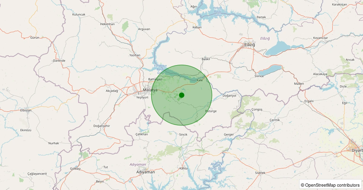Son 7 gün içinde Battalgazi - Pelitli Köyü noktasından 100 km yarıçap içerisinde meydana gelen diğer depremler: