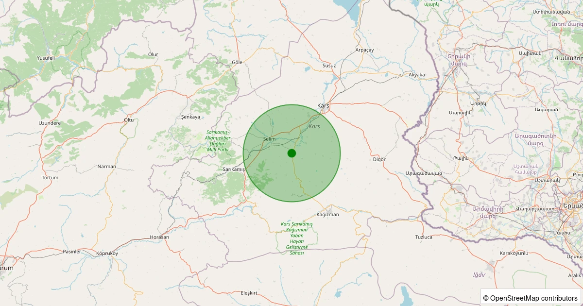 Son 7 gün içinde Selim - Koyunyurdu Köyü noktasından 100 km yarıçap içerisinde meydana gelen diğer depremler: