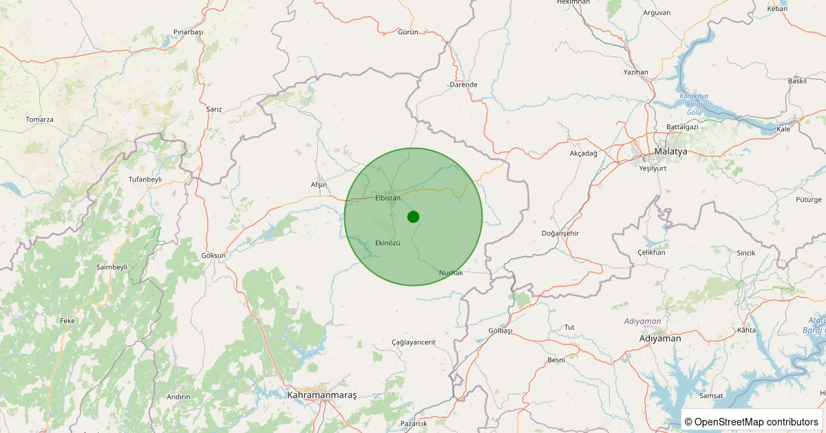 Son 7 gün içinde Elbistan - Akbayır/Osmangazi noktasından 100 km yarıçap içerisinde meydana gelen diğer depremler: