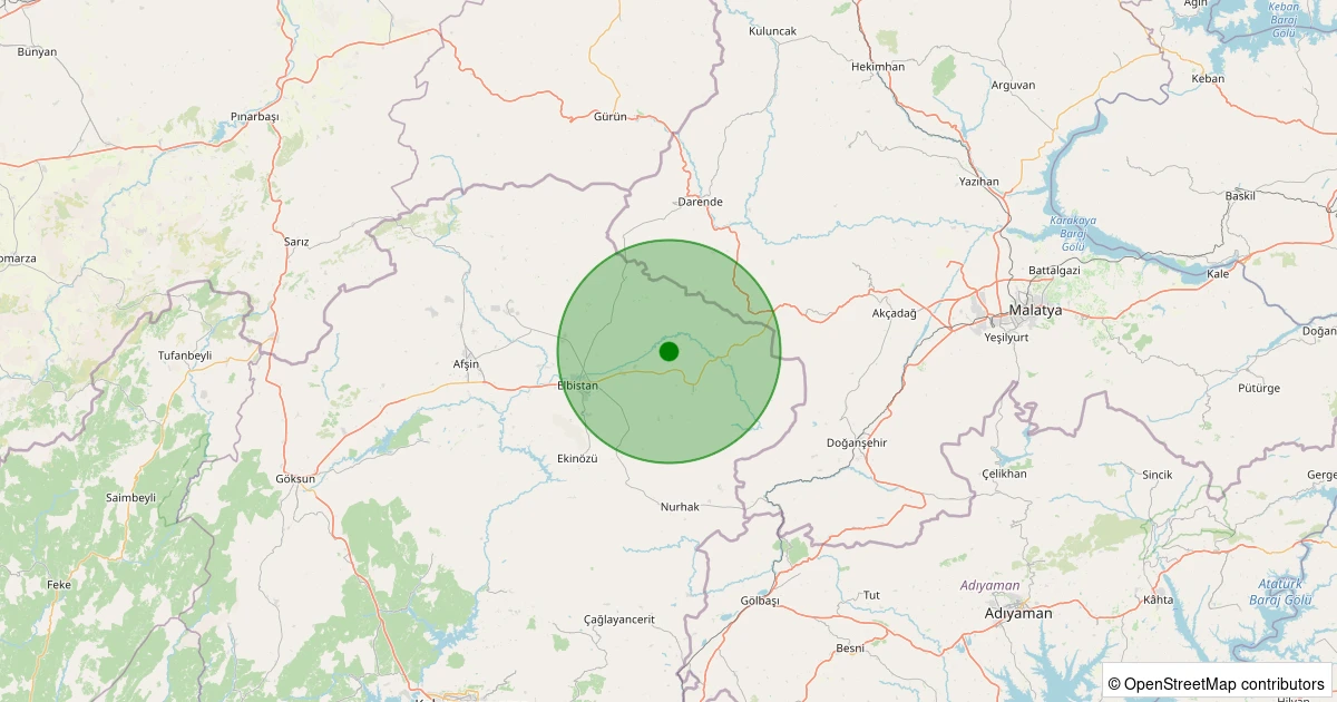 Son 7 gün içinde Elbistan - Akbayır/Yavuzselim noktasından 100 km yarıçap içerisinde meydana gelen diğer depremler: