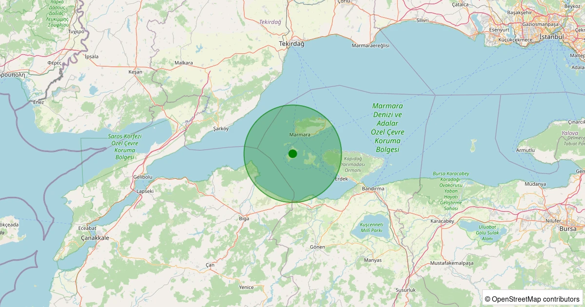 Son 7 gün içinde Marmara - Yiğitler Köyü noktasından 100 km yarıçap içerisinde meydana gelen diğer depremler: