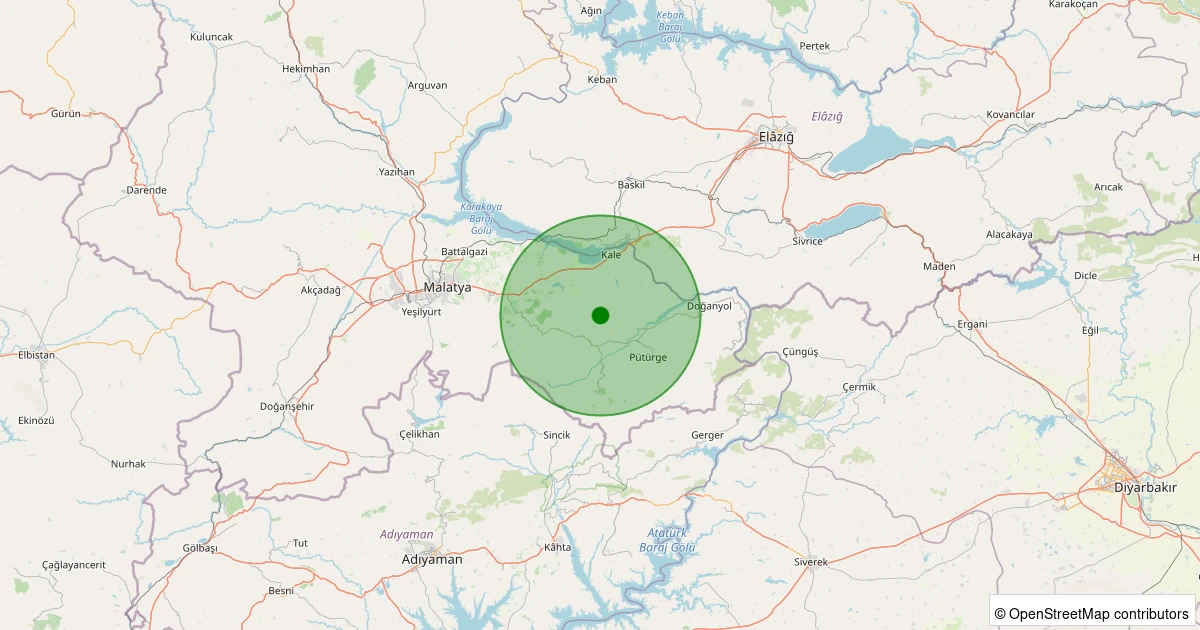 Son 7 gün içinde Pütürge - Pazarcık Köyü noktasından 100 km yarıçap içerisinde meydana gelen diğer depremler: