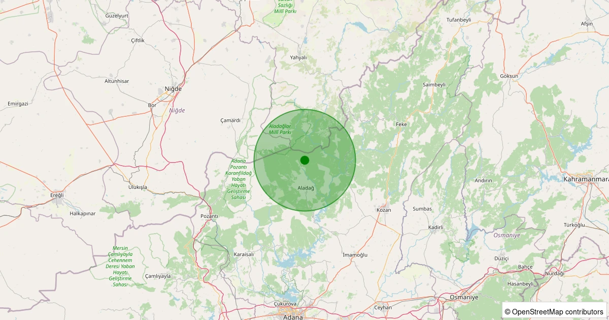 Kandilli üzerinden alınan ölçümlere göre Aladağ bölgesinde 21.02.2026 14:12 tarihinde gündüz saatlerinde 1.5 büyüklüğünde bir deprem meydana geldi.