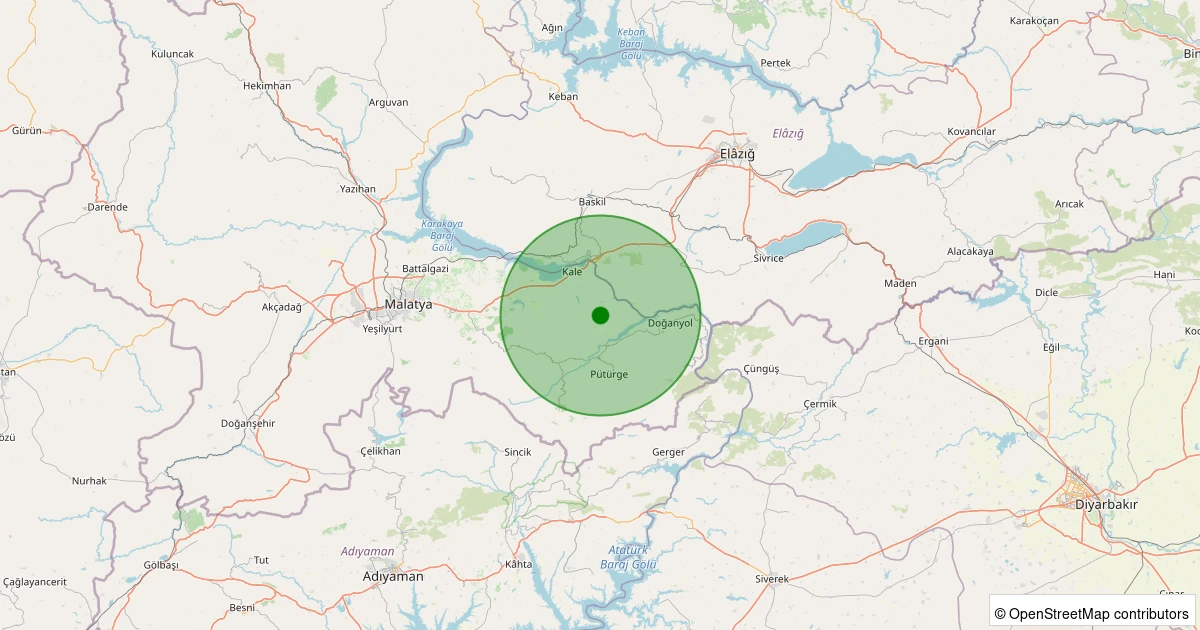 Son 7 gün içinde Pütürge - Çığırlı Köyü noktasından 100 km yarıçap içerisinde meydana gelen diğer depremler: