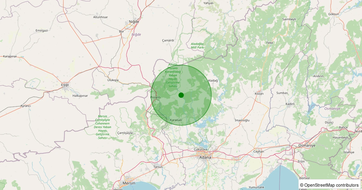 Son 7 gün içinde Karaisalı noktasından 100 km yarıçap içerisinde meydana gelen diğer depremler: