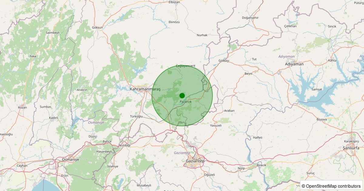 Son 7 gün içinde Pazarcık - Tetirlik noktasından 100 km yarıçap içerisinde meydana gelen diğer depremler: